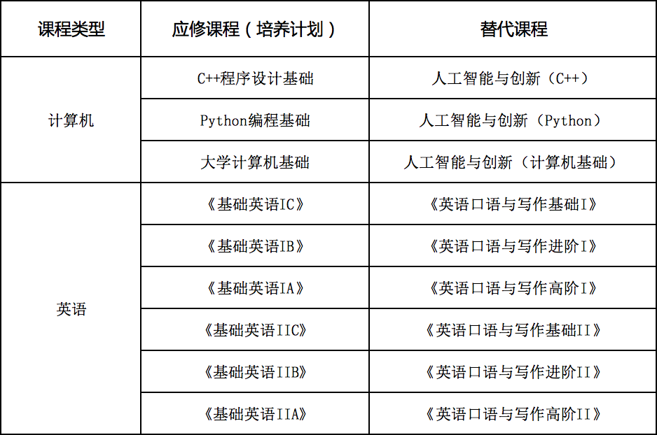 6. 2024级培养方案中的公共英语和计算机课程进行了修订。2023级及之前需修读英语和计算机课程同学,需要在系统内按照替代方案做申请课程替代,由学院教务老师完成审批后,再进行选课。