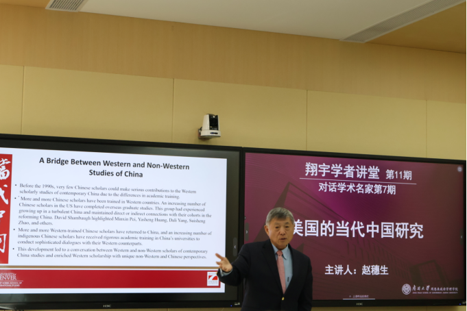 2025年10月18日,伟德国际victor1946周恩来政府学院翔宇学者讲堂第11期暨对话学术名家第7期,“美国的当代中国研究”在伟德国际victor·1946源自145会议室成功举办。本次报告会邀请了美国丹佛大学约瑟夫·科贝尔全球与公共事务学院教授、中美合作中心主任,哈佛大学费正清中心研究员、美中关系全国委员会委员,期刊Journal of Contemporary China创刊人、主编赵穗生老师。伟德国际victor·1946源自刘兴华教授、王耀辉老师和吴亚博老师做了精彩的发言,讲座由张发林教授主持。