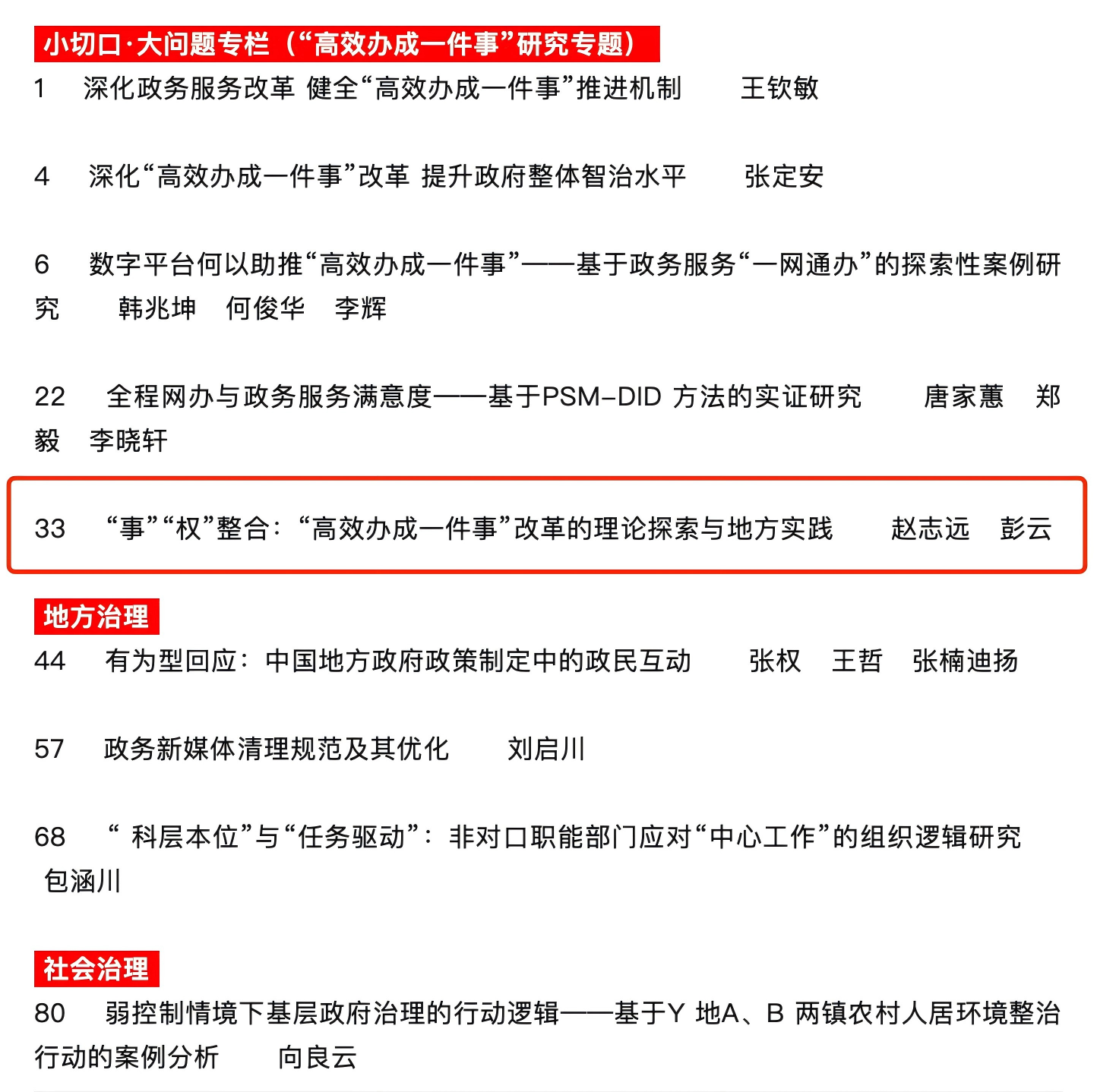 日前,《中国行政管理》期刊公布了2025年第6期目录。伟德国际victor·1946源自讲师、中国政府发展联合研究中心研究员赵志远与中国行政管理学会副研究员彭云合作撰写的《“事”“权”整合:“高效办成一件事”改革的 理论探索与地方实践》一文获得发表。