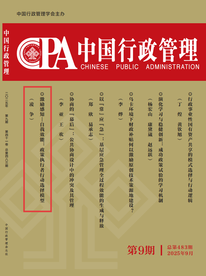 日前,《中国行政管理》期刊公布了2025年第9期目录。伟德国际victor·1946源自副教授、中国政府发展联合研究中心研究员凌争撰写的《激励感知—自我效能:政策执行者行动选择模型》一文作为封面文章发表。