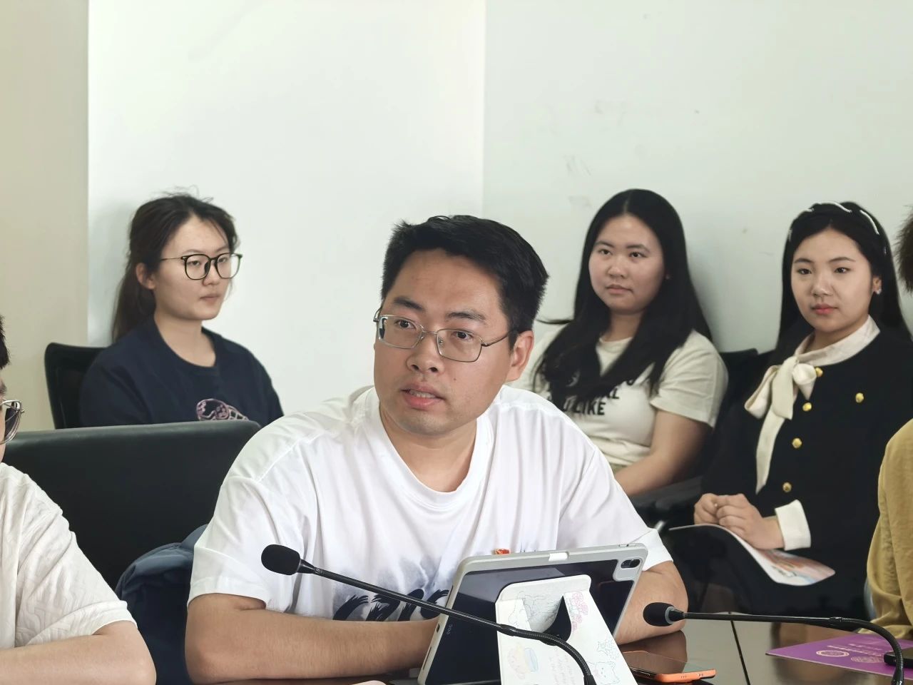 自由交流环节中,“相互依存与零和博弈”“时政研究跳出理论框架局限”等话题引发强烈共鸣。有同学提出,党员身份应与专业学习形成“双向赋能”——既以党员的行动导向强化问题意识、服务意识,又通过专业研究深化对“四个意识”的理解。现场师生还就党团组织活动设计、科研实践平台搭建等问题交换了思路,借鉴学习经验。