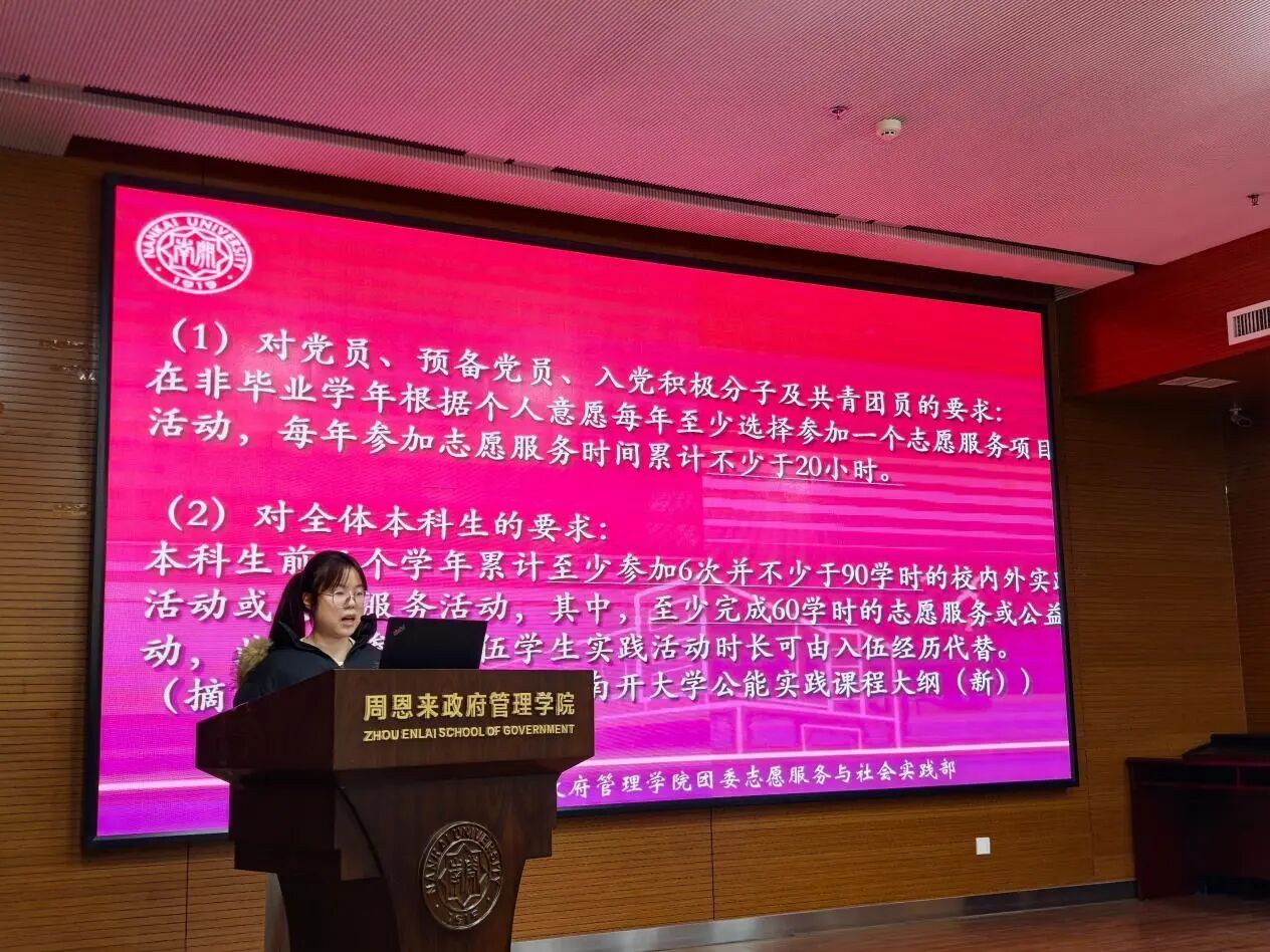 随后,实践考评中心的负责人邹含瑜同学为大家详细说明了志愿服务与社会实践时长的相关规定,并结合伟德国际victor1946《公能实践》课程进行了完善而清晰的解读。