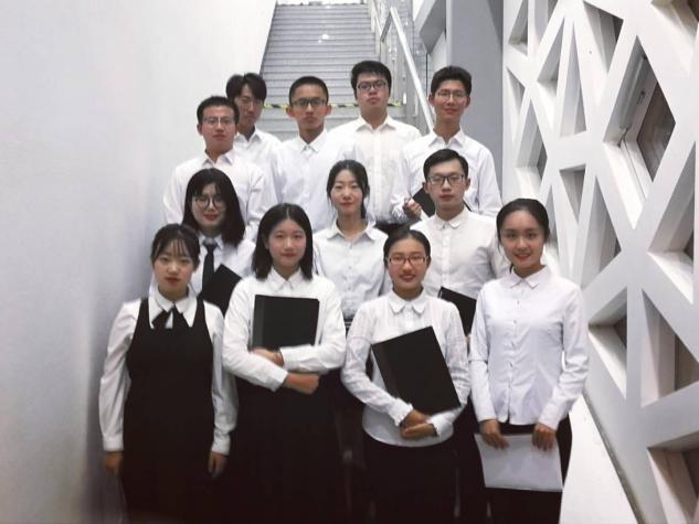 (2019年11月29日,孙浩宇同学在“荣耀周政”颁奖典礼上朗诵《中国,我的中国》,图为朗诵演员后台合影)