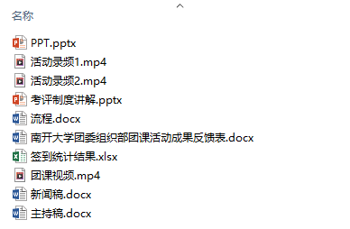 那么,团小组时间紧迫下上交的材料如何保证质量?在今年3月29日,孙浩宇同学向参评小组分享经验时,他特地展示了当年团小组评优的文件夹,所有的文件分门别类、整整齐齐地存储着,想要的文件都能够很快地被找到,所以即使时间紧迫,也能够保证材料的质量。