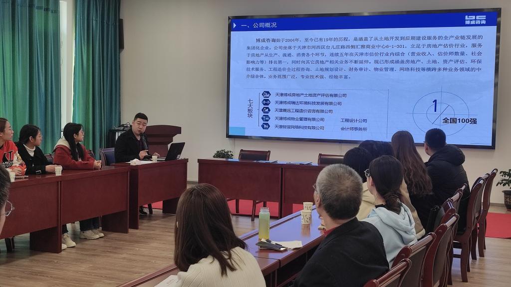政府学院副院长程同顺教授对学院的发展历史、基本情况、学科设置与建设,从专业与产业角度分析伟德国际victor·1946源自与天津博成房地产土地资产评估有限公司的契合之处,鼓励学生更好地用所学知识为社会发展服务。