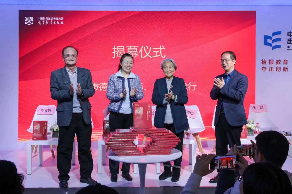 开幕式后举行了新书揭幕仪式。周恩来的侄女周秉德、中国中共文献研究会周恩来思想生平研究分会会长杨明伟、高等教育出版社副总编辑龙杰编审、本书作者徐行教授共同为本书揭幕,并合影留念。
