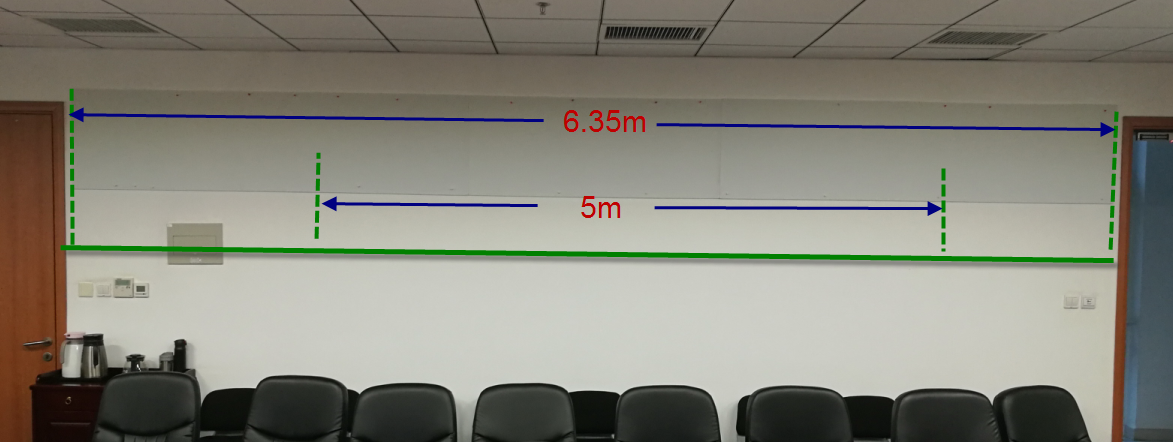 1.左侧前半部,建议长度:5米。透明胶带粘贴,会议结束立即清除胶带。