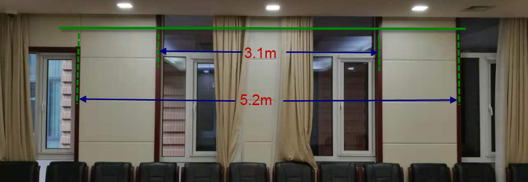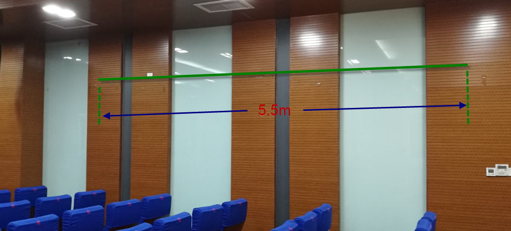 2. 左侧后半部,建议长度:5米,最长不超过5.5米。透明胶带粘贴,会议结束立即清除胶带。